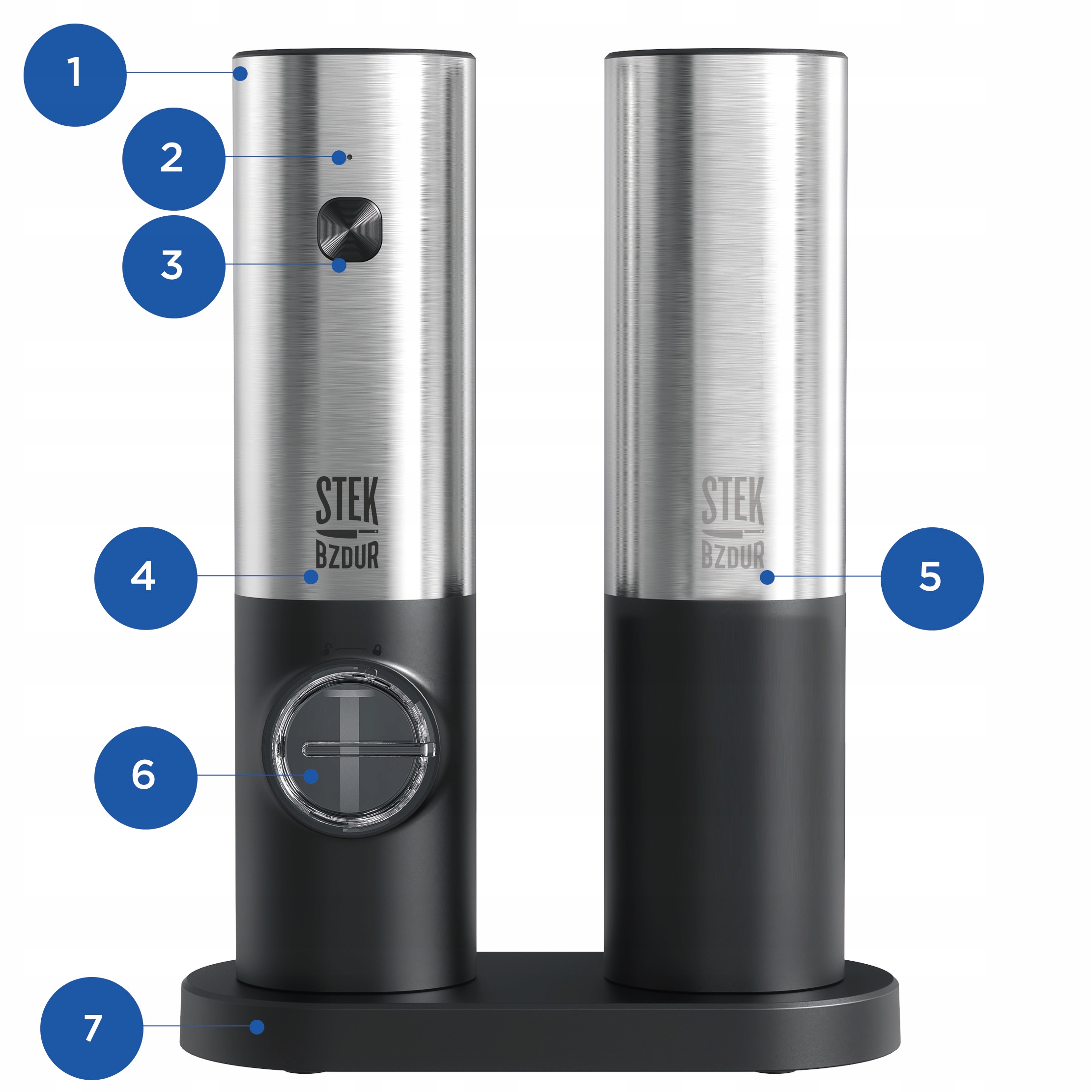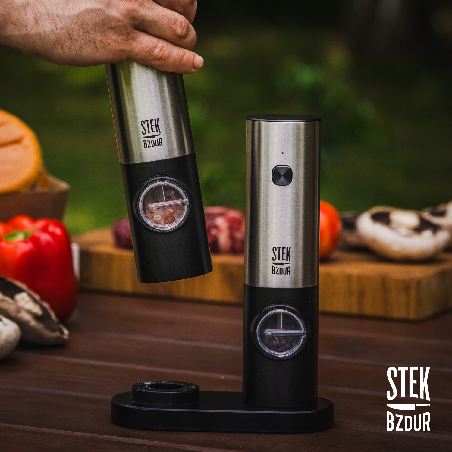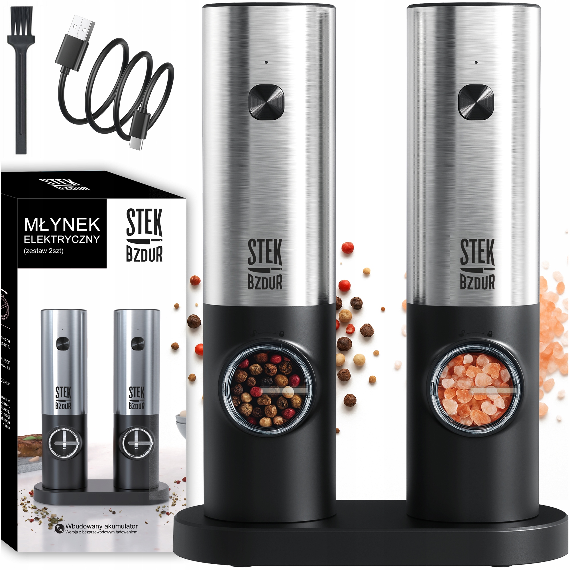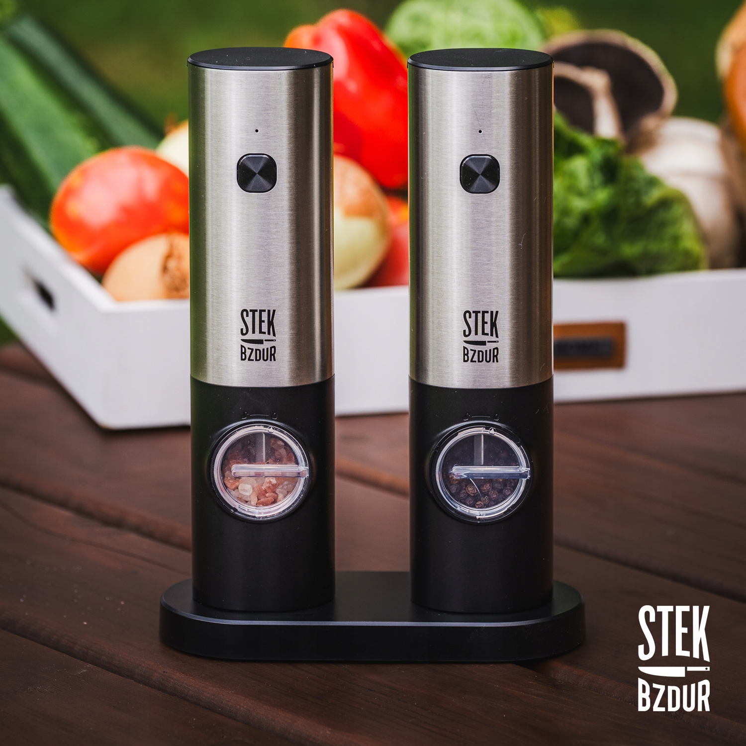Zestaw 2x Elektryczny młynek do mielenia pieprzu i soli z akumulatorem – Stek Bzdur