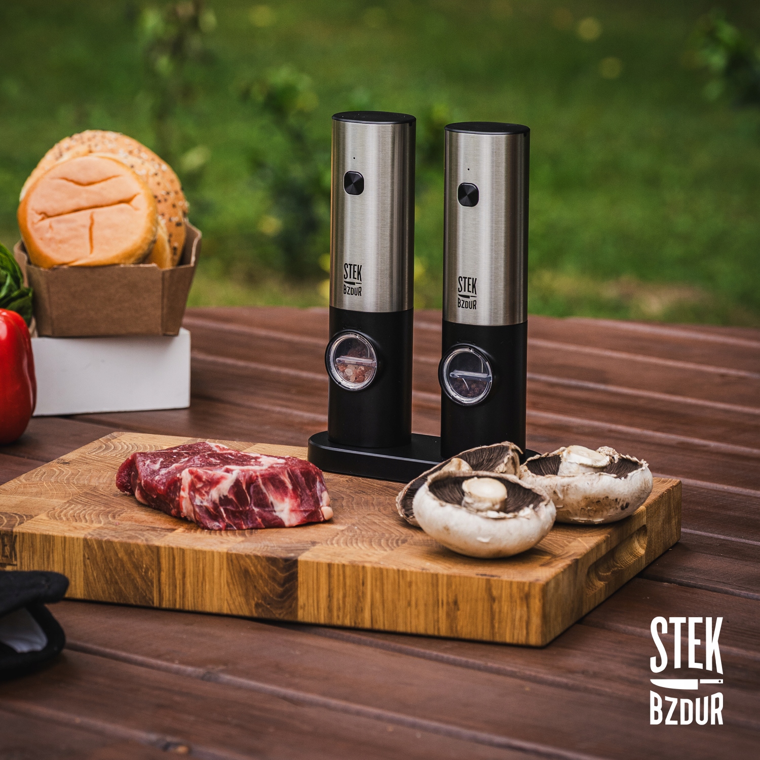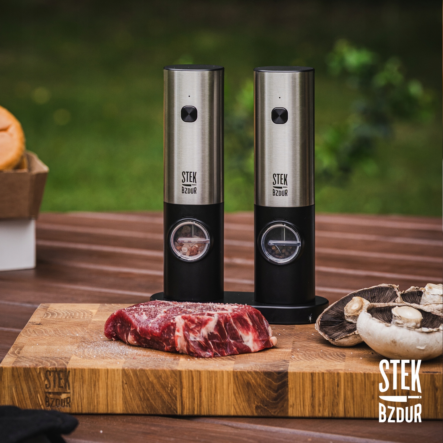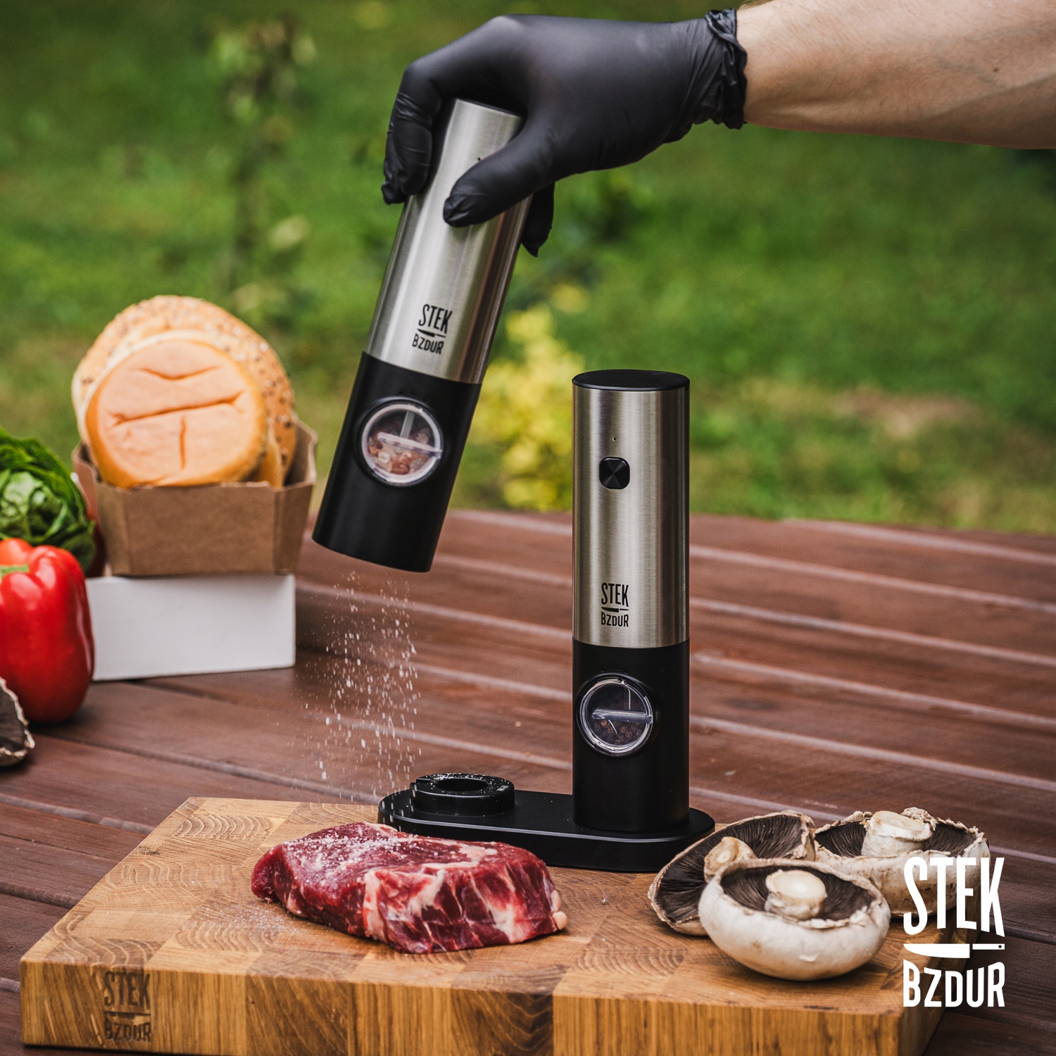 Zestaw 2x Elektryczny młynek do mielenia pieprzu i soli Stek Bzdur